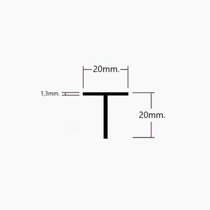 El perfil T de aluminio es un perfil metálico con una sección transversal en forma de “T” con alas que forman un ángulo recto (90°).